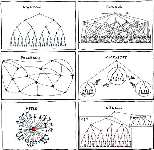 今天看到一份蠻有趣的組織圖。(引用自原文)圖中以著名的的IT公司為例,來表示不同公司的文化,